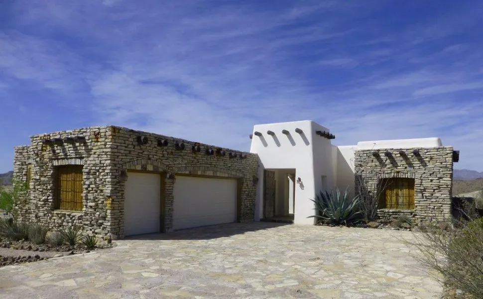 Located within Mesa Vista in Lajitas, this gorgeous home was custom built with a superior energy efficient design. The exterior walls are stone and stucco, 2" x 6" wood studs, R-29 insulated walls and R-50 insulated ceiling. The roof is only 3 years old and has a low slope with energy efficient, reflective, elastomeric coating. The home has 10' ceilings throughout and custom wood vegas in living room and 2 bedrooms. Walls have custom applied tinted-plaster with bullnose corners for a smooth and elegant finish. There is amazing natural light with the high-end Pella wood casement windows and transoms. Most are triple paned with integrated mini-blinds and roll-down screens. The home offers 2 bedrooms, 2 baths, office, 2 dining areas, living room, 2 stone fireplaces, and open kitchen. The kitchen has custom wood cabinetry, trash compactor, high end stainless steel appliances, granite countertops, and reverse osmosis system. The master bathroom has a double sink vanity, large walk-in shower, built-in dressing table, and Jacuzzi tub. A casita includes another bedroom and bathroom and is adjacent to the 2 1/2 garage and storage room. The garage ceiling has been reinforced to host a future solar system if desired. Authentic mission doors provide access to the property from the driveway into the courtyard. The courtyard is full of desert plants, rock, and gravel paths around most of the home. The fountain in the center of the courtyard has a beautiful setting looking out towards the mountains in Mexico and towards Lajitas. There are views of Lajitas Mesa from the master bedroom, office, and guest bedroom that are breathtaking. The home comes fully furnished with contemporary western dcor throughout including linens, decorations, cookware, art, leather sofa, tables, chairs, two dining sets, and all appliances. Utilities are very low and history is available upon request. This home is one-of-a-kind.