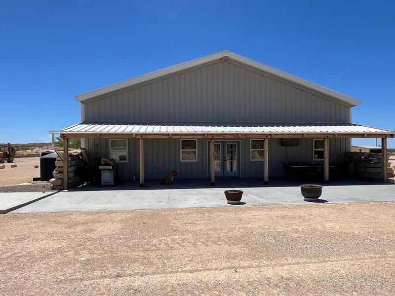 58 miles south of Alpine sitting on 20 acres is the Incredible 4500 ‘ Barndominium with its incredible views, amazing rock work, fabulous fossil fireplace, a private cellar, a 6 burner commercial stove, enclosed garage and workshop,3 bedrooms, 2 bathrooms, with room to add more. 7500' gal. water catchment system. There is a large fenced pasture for your livestock. This property is to be sold with everything but the art work. It is a MUST SEE TO BELIEVE. INCREDIBLE!! By appointment only