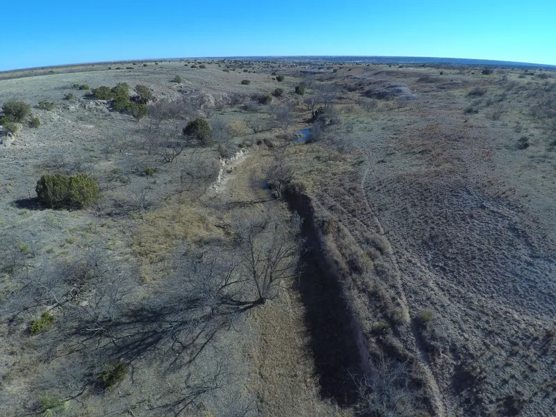 Cope Creek meanders through this section from the north to the south. Several areas along the creek hold water most of the time for cattle and wildlife. The creek becomes deeper and wider as you travel southward. The northwest 155.29 acres is enrolled in the CRP program and is expiring 9/30/2020. This area has several small to medium sized mesquite trees that will provide good cover for deer and other wildlife. These acres have a mix of bluestem and shorter native grasses that cows prefer. There are also 42....
