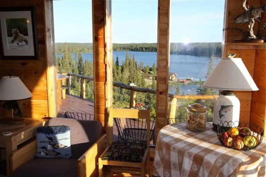 The private in-holdings include 120 acres, bordering three lakes, two ideal for float planes, within walking distance is a large flowing river, supporting a large and healthy population of world class wild Rainbow Trout, plus all five species of Salmon.