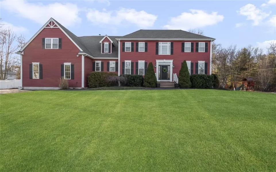 GORGEOUS! Custom-built, 3900 sq foot grand colonial (4 bedrooms plus bonus room) offers high style in warm, welcoming spaces. Light-filled foyer leads to private home office and the dining room with classic wainscoting. The fire-placed living room has coffered ceiling and floor-to-ceiling columns. Sparkling, updated kitchen has beautiful tile backsplash, granite counters, custom cabinetry and entertainer's island! Mudroom, powder room and pantry flank the kitchen for everyday convenience. Family room, currently used for distance learning, boasts the brazilian cherry wood floors that flow through the house. Upstairs find private master suite w/ large bathroom with soaking tub, shower and huge walk in closet. 3 additional bedrooms AND a huge flexible bonus room - perfect as office, guest quarters, exercise room. Basement has huge play room and walk out. Outdoors: luxurious heated, inground salt water pool, entertainer's patio, deck, play area; sport court; 3 car side entry garage. Passing inspection: Title V