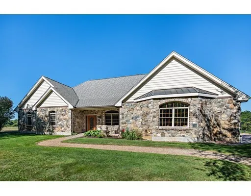 Welcome to Old Stone Farm! Custom executive ranch situated on 11.5 acres & surrounded by over 100 acres of conservation land granting immense privacy and tranquility. Ideally located 60 miles south of Boston & 10 miles east of Providence. This unique property renders a Detached 1600 sq. ft, 2-Story Out-Building heated & insulated with 12 ft. Ceilings on the 1st floor, water & electric. This out-building is the perfect space for detached office, home gym, studio, barn, or workshop space. Constructed in 2002 with the highest quality building materials this home features custom masonry exterior of natural Fieldstone & Belgium Cobblestones along with Certainteed Cedar Impression Shingles, Pella Windows, owned solar panels & 50 year roof. Radiant heat flows through the home and also into the spacious 2 car garage. Interior renders spacious single level living, chef's kitchen, cathedral ceilin...