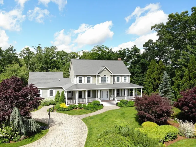 Quality abounds as you enter the extended paver circular driveway & walkway welcoming you to this custom built home! The expansive hardscapes & landscaping w/matured beds of natural beauty w/irrigation system is breathtaking! Enjoy quiet nights on your wrap around mahogany farmer's porch w/large private tiered deck. Stunning foyer with open floor plan has custom design Brazilian cherry hardwood floors thru out. Gourmet kitchen w/Birchcraft cabinets, copper sink, double ovens & gas cooktop, subzero refrig, granite, entertainment area w/sink, wine & drink refrigs w/icemaker. Dining area & space for home office. Formal DR & front to back FR w/fireplace. 2nd level offers primary suite w/beautiful bath & walk in closet + 3 good sized bdrms. Lower level finished in 2010 w/great room w/full walkout & beautiful bump out w/windows. Full bath in lower level is perfect for guests! Expansive wireles...