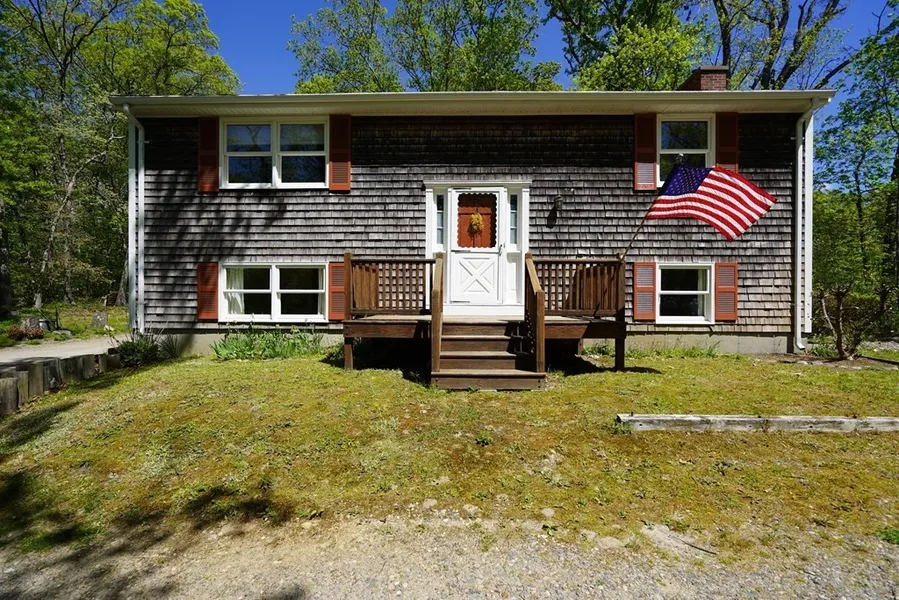 1.54 +/- Acres! Private country setting and only a few minutes from all shopping, main routes and the MBTA train. 14 x 24+/- front to back family room with fireplace and pellet stove. Built in bar and picture frame moldings. 2 full baths. 13 x 14 bedroom down. Two bedrooms on the main level. Nice open floor plan in the living room, dining area and kitchen. Granite countertop on the island in the kitchen. Dining area opens to an enclosed porch. Summer evenings are enjoyed on the porch as well as the private deck. Bonus! Detached building with wood stove ready for the next get together. Separate shed for workshop and storage. All nicely set back from the street! Come take a look! Showings start Monday, June 20th by appointment.