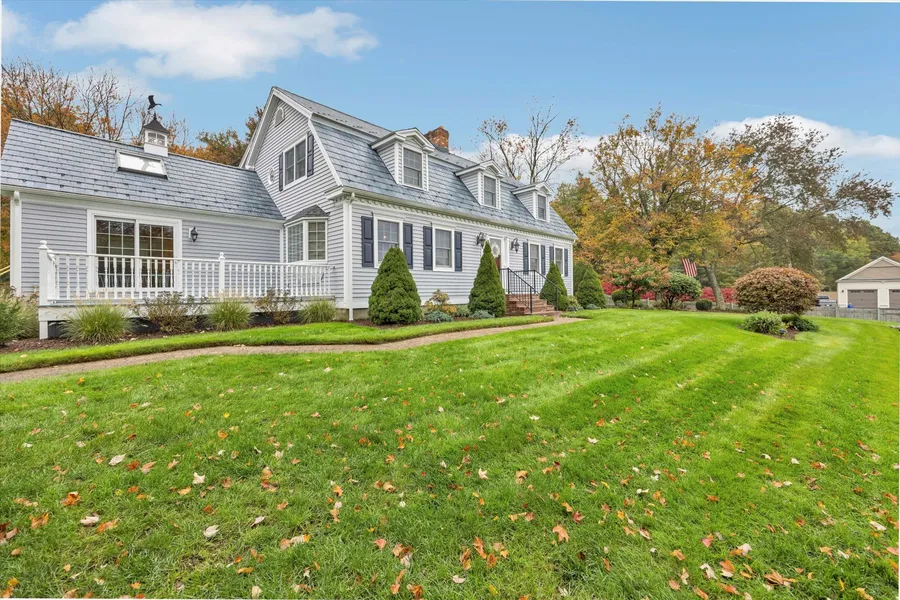 Meticulously kept grand custom-built Gambrel/Cape with separate oversized one-car garage, nestled on a private 1.4 acre lot with 3 bedrooms and 2.5 baths. At the heart of the home, a stunning new gourmet kitchen featuring custom cabinetry, commercial appliances, granite counters, large island, dining area and pantry. Impressive main level includes a half bath/laundry, separate dining room, family room with outdoor deck, and front to back living room featuring hardwood, fireplace, and custom built-ins. Step through the living room into a gorgeous 3-season room with an Azek deck overlooking fenced in backyard with lush green lawn and mature landscaping. Upstairs includes a large primary suite w/bath, his/her walk-in closets, two large bedrooms with shared full bath. Finished basement provides endless possibilities for playroom/office/exercise. Unfinished workshop area. Maintenance free siding, metal roof, generator, irrigation, town water/sewer. Just 2/3 miles from Rt 24 and 495!!