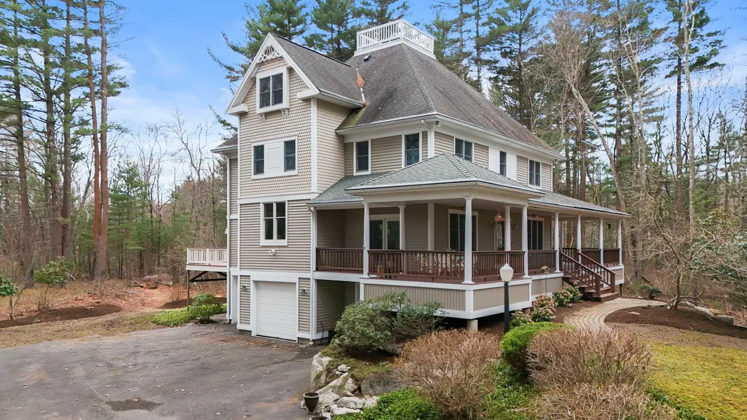 Escape to this tucked-away custom-designed home on over five tranquil acres in desirable Chestnut Knoll! Designed with an eye to minimal exterior maintenance and to bring nature in, you'll love this private retreat nestled at the end of a cul-de-sac. SO much to offer! Cross the mahogany wrap-around porch with an outside dining area and explore its ample floorplan. A grand foyer leads to a formal living room, library and fireplaced family room. Relax and enjoy the serenity of the surrounding woods, with a full-width rear deck. Upgraded kitchen with large central island/range/double ovens and walk-in pantry offers plenty of options for cooking, storage and entertaining. It is flanked by a breakfast room and formal dining room with porch access. Upstairs you'll find an elegant primary suite with a deep-jetted tub and walk-in shower, two bedrooms with Jack and Jill bath, laundry and oversized custom California Closets. Fourth bedroom/office with a full bath on the lower level. 9.5' ceilings, workshop, three-car insulated garage, enormous walk-up attic to expand… Wow!