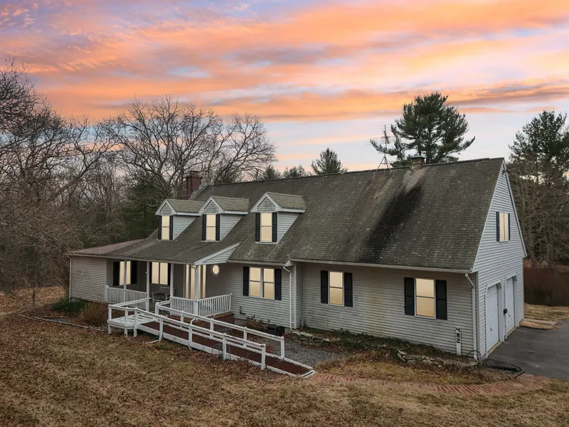 Outside is an additional garage/storage shed/barn (possibly suitable for small farm animals), a nice firepit area on a cleared knoll surrounded by forest, and expansive spacious solitude! If 32+ acres is not enough...this special place is bordered by 100s of acres of State and Town-owned conservation land assuring privacy and quiet enjoyment! See attached info below about these open space/protected lands known as MA Wildlife Management Area's 'Puddingstone' and Town-owned Arthur Sharpe Estate. Property is being sold AS IS, Title V failed so new septic design is in process and installed. It is a land assemblage package consisting of the parcel with the homestead on almost 4 acres; PLUS abutting undeveloped parcels totaling 22.69 acres altogether. The year 2024 property taxes are $7567 combined.