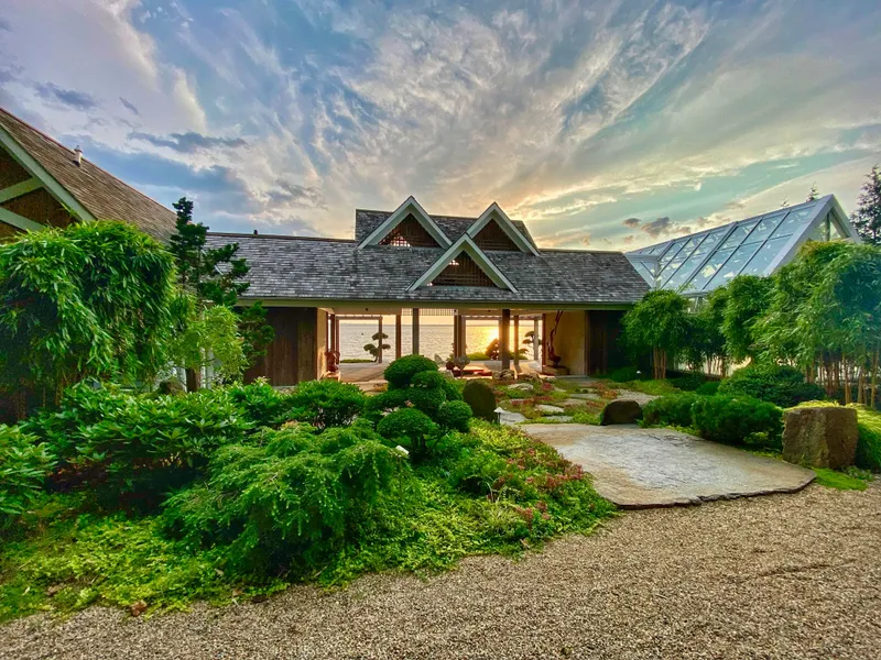 This extraordinary coastal compound, with its captivating ocean panorama and meticulously landscaped grounds, is an ideal place to gather with family and friends. Poised at the end of a secluded lane, the 1.5 acre estate spans 456 ft of shoreline, connecting four main structures with natural pathways and elegant teak decks. Sweeping bay views grace every room, while an abundance of wildlife enhances the property's natural charm. The "Bungalow", a one-bedroom retreat, boasts soaring ceilings, New England barn beams, and glass doors opening to the lanai with a sunken dining table with sunset views. A private pebble beach awaits steps away. Adjacent, an infinity-edge pool, waterfall, and jacuzzi offer bay views, anchored by a pool cabana with a stone shower, bathroom and sauna. Opposite the pool, the "Main House" invites gatherings in its expansive living, family and dining rooms with sliding doors and oversized windows. A well-appointed main kitchen, wine room, and galley pantry facilitate entertaining with two ensuite king bedrooms on the second floor. An herb garden separates the "Main House" from the "Cottage", a quaint 2 story dwelling with gym/studio and ensuite king bedroom. At the far end of the property, the "Tea House" features an enchanting outdoor teak pavilion with soaring ceilings, a sunken dining table, ensuite king bedroom, gallery kitchen and state-of-the-art greenhouse. Raised garden beds and two car garage complete this impressive estate.