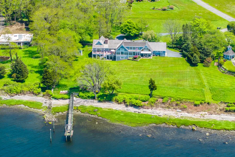 Welcome to Poppasquash Point, the essence of coastal living, where luxury, lifestyle, and location converge on the waterfront of Narragansett Bay. This contemporary shingle-style home has an expansive lawn that gently slopes down to a private 150-foot dock, deep water mooring, and beachfront. Perfectly situated in a westerly-facing position with panoramic views that stretch across the bay, you will enjoy breathtaking sunsets and the tranquil sight of yachts gliding by. Located minutes from historic downtown Bristol's vibrant restaurant and shopping scene, and just twelve nautical miles from the city of Newport, this location is as convenient as it is serene. Featuring 5 bedrooms and 5 bathrooms, complimented by vaulted ceilings and hardwood floors that enhance its overall elegance. A first-floor master suite offers a sitting room and two full bathrooms for a truly secluded retreat. Grani...