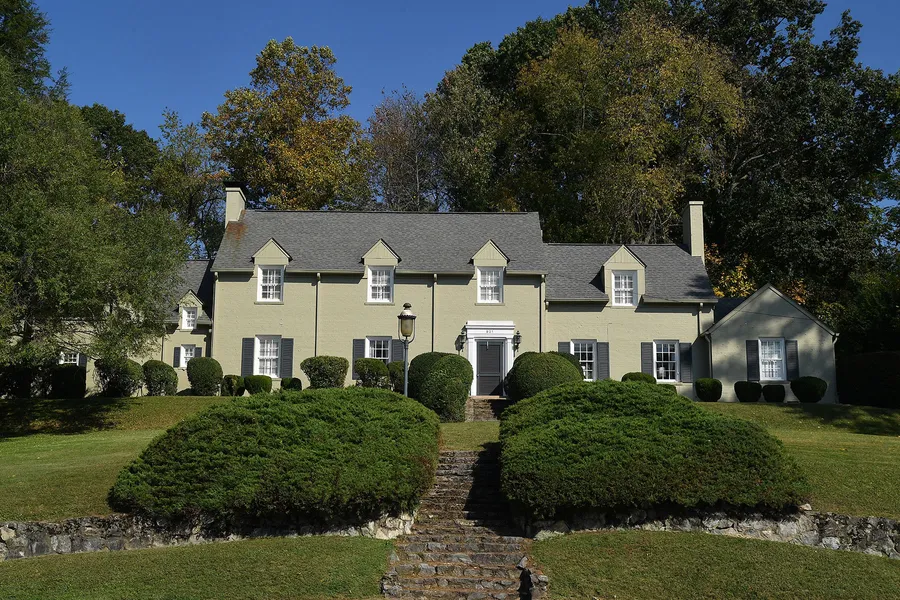 A charming English style painted brick house on 1.4 acres on the most sought-after street in Bristol, Virginia. Beautifully maintained lawn with swimming pool, old-growth boxwoods and fenced wooded area. Large rooms with 9-foot ceilings on the main level, up the sweeping stairs to four bedrooms and three full baths on the second level. The entrance foyer opens from the front and back doors, formal living and dining rooms, den, breakfast room, and kitchen, as well as, a large room that was once a two-car garage. There are three fireplaces - living room, den and master bedroom.