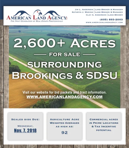 On behalf of the Edward Telkamp Family, American Land Agency, LLC is extremely proud to offer a once in a lifetime land sale involving 2,600+ prime acres surrounding Brookings, South Dakota and the South Dakota State University (SDSU) campus.