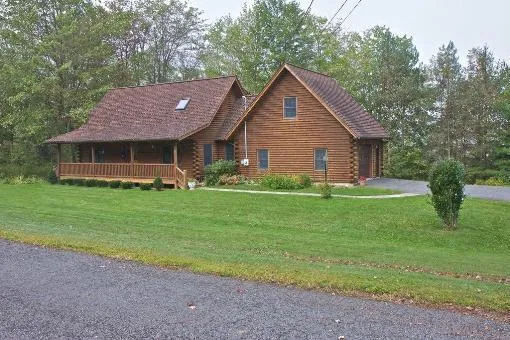 Located at the end of a cul-de-sac is this "Beaver Mountain Classic" log home. 10-inch white-pine logs with tongue-&-groove interior walls. Cathedral ceilings in the 16x24 living/dining room with French doors to the pressure-treated deck. Kitchen with center island, custom cabinets, Corian counter-tops and all appliances. Separate laundry room. First-floor bedroom and full bath. Second-floor loft bedroom with sitting area and another bath with shower. 12x18 unfinished room with cathedral ceiling would make great additional bedroom or storage area. Easily finished walk-out basement with heated floors would be perfect for additional bedroom or man cave. Attached garage w/workbenches and heated floors. Baseboard hot water heat, 200-amp electric service. Many extras!! A must see!