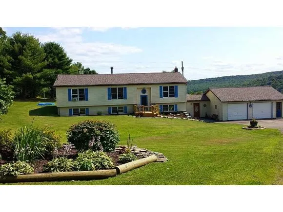 Enjoy your privacy on this 7.1 acre parcel with Breathtaking Views from Tiered Deck. Landscaped Yard overlooks Large-Stocked Pond with Dock. The home features Cathedral Ceilings, Stone Fireplace, Open Floor Plan, Bright-Oak Kitchen with Solid Surface Counters, Lower Level Completely Finished with Spacious Family Rm, Wet Bar, Bedroom and Bath. Large 2 car garage, mud room and much much more.