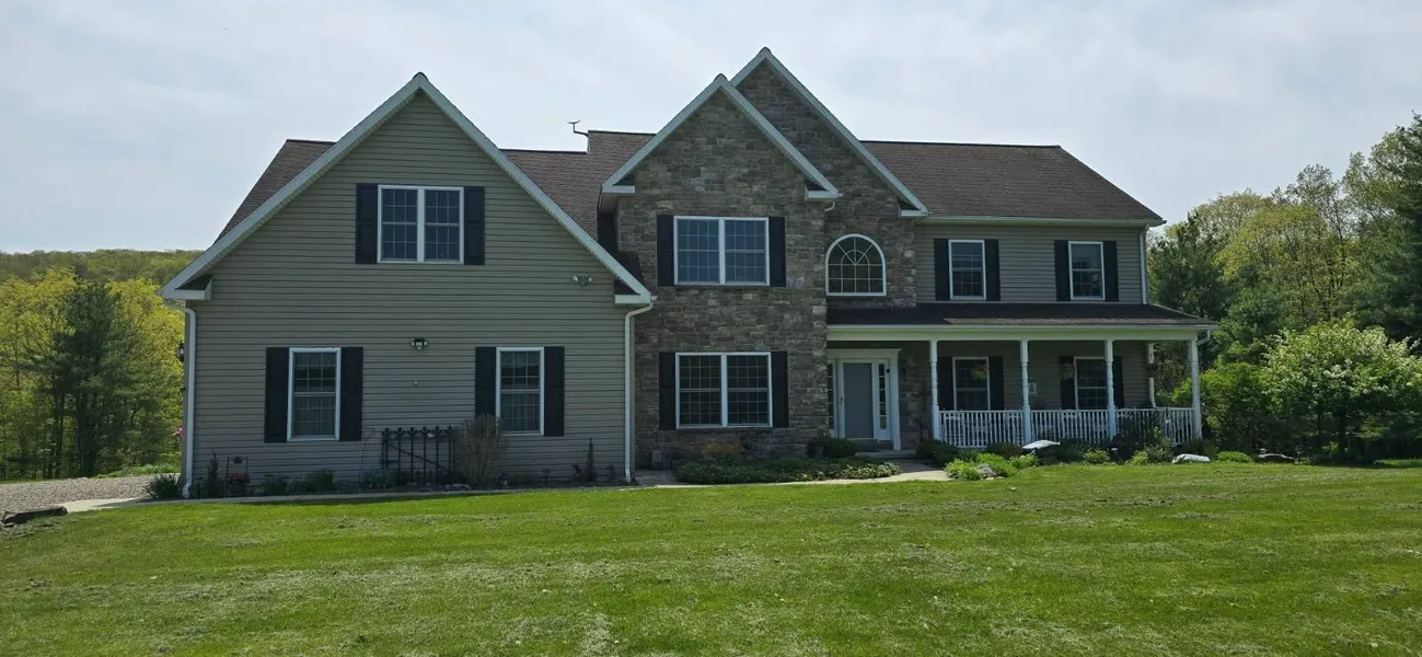 SELLING THIS HOME ON AN 18+/- AC LOT, an additional 133+/- acres is still available for those interested. Let your country-living dreams come true with this park-like estate, in a very private location teeming with wildlife. Located within the Windsor School District, this immaculate, 5374 sq. ft. contemporary colonial, built in 2006, features 4 generous bedrooms, 4.5 bathrooms and ample room for large gatherings of family and friends, both inside and out. The updated, separate eat-in kitchen features new quartz counters and newer stainless steel appliances, including a glass range top with double oven, Frigidaire French door refrigerator, Jenn air grill, dishwasher, trash compactor, and garbage disposal. The kitchen has room for a full sized table for informal meals and is open to a family room with 20' ceilings and a propane fireplace for cozy gatherings, while a large separate dining room is located on the other side off the kitchen, perfect for more formal meals and entertaining. Off the sunny kitchen, French doors lead to a screened-in porch with a ceiling fan and then on to an open Trex deck area with an automated SunSetter awning for ultimate outdoor comfort. Additional rooms include an office, formal living room, den, a large hobby room (which could be used as a media room, play area or studio) and another sizeable family room with gas fireplace located in the light-filled, finished basement. Sliders from there lead to a large patio area and attached greenhouse outside. There is also a full sized shower/tub located in the utility room for doggie baths. Quality building features include a poured concrete foundation, easy care vinyl windows & siding, two 1000 gallon buried septic tanks, buried electrical service, central AC & heating systems, Generac propane back-up generator, Blink security cameras and Century alarm system and an oversized, 3 car attached garage with door openers. Outdoor features include manicured landscaping and a lovely .4 acre pond, as well as an orchard with both apple and pear trees. This incredible property provides multiple options for the new owner with 3 steel outbuildings, offering any number of uses including workshop, storage, art studio, potential for horses and/or small farm livestock. All buildings feature electrical power and concrete floors. The first is ~27'x 40' with a 10' roof extension and 10' overhead door. The second building is ~27' x 50' long and includes 6 propane heaters and floor drain, while the third building is ~24' x 45' with an overhead door on both ends. There is an additional adjoining 133+/- acres available which makes this property ideal for outdoor enthusiasts, offering a diverse habitat, perfect for whitetail deer, wild turkey, and area wildlife. Amenities are easily available within 15 minutes in nearby Windsor, with additional shopping, restaurants, and entertainment in the greater Binghamton area within 15 minutes. NYC/George Washington Bridge is located just 2 hours and 45 minutes from this property.
