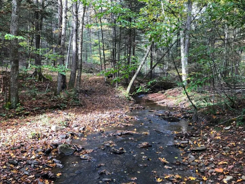 143 acres private forest with stream, trails, game and cabin sites in Triangle NY.