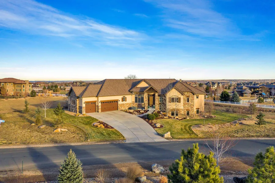Stunning Custom Ranch Home in the sought after Spruce Meadows, Broomfield! Situated to maximize views on 1.32 acres, adjacent to community trail. Spacious, open floor plan showcases the attention to detail. Great room has custom built-ins, high ceilings opens up to gourmet eat-in kitchen w/ large granite island, custom alder cabinetry, pantry, butlers area, stone fireplace & private study. Tranquil Master retreat w/ fireplace, high ceilings, lux master bath, spacious walk-in closet. Main level has two additional bedrooms each have en-suite bathrooms, 2 more main level powder/guest bathrooms & large laundry room. Finished lower level perfect for entertaining w/custom bar, wine fridge & beer tap, tv hookups though-out, two more lower level bedrooms, Jack & Jill bathroom, & walk-out to backyard. The oversize deck leads down to a patio w/ fire pit & seating area. 5 car pull through garage w/ built-in cabinets this home truly has it all! Large lot, gorgeous home, perfect for everyone!