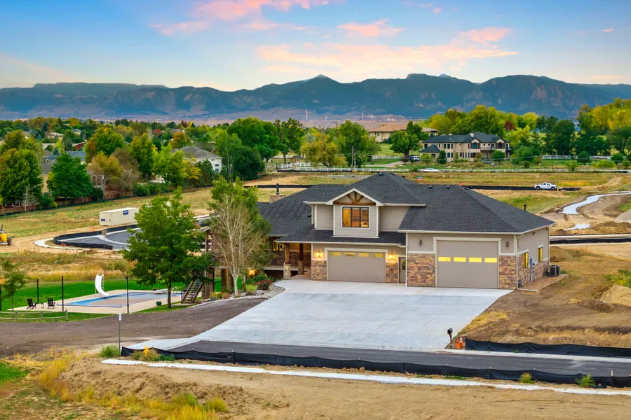 Welcome to this stunning custom-built masterpiece in coveted Broomfield County. This expansive residence boasts over 6,500 square feet of luxurious living space, offering a lifestyle of unparalleled comfort and elegance. Perched atop a hill on over an acre, this home provides breathtaking mountain views creating a backdrop that is nothing short of spectacular. Imagine mornings sipping coffee and evenings basking in the glory of unforgettable sunsets from the inviting wrap-around balcony connected to the primary owner's retreat. A true entertainer's dream, the chef's kitchen is equipped to handle any culinary adventure with grace and style boasting top-of-the-line stainless appliances, tons of custom cabinetry, large island and flooded with sunshine with walls of windows to the south. The fully finished walk-out lower level adds a layer of versatility, offering additional space for recreation, relaxation, more in suite bedrooms and walking out to the beautiful pool and yard. This residence is a perfect blend of form and function. Inside, you'll be greeted by the warm embrace of knotty alder doors, lovely durable wood flooring along with soaring volume ceilings that create an atmosphere of grandeur. The office, which doubles as a workout room, is a testament to the thoughtful design that permeates every corner of this home. The six-car heated garage, featuring a new floor coating, is a car enthusiast's haven, and it doesn't stop there- this space is thoughtfully designed to accommodate two large RVs, making it an ideal haven for those with a penchant for exploration. Situated within the highly sought-after Boulder Valley School District, this home falls within the boundaries of Aspen Creek K-8 and Broomfield High School, providing exceptional educational opportunities. With proximity to Boulder, DIA, and downtown Denver, convenience meets luxury in this exceptional property. Don't miss the chance to make this extraordinary custom home your own. Welcome Home!