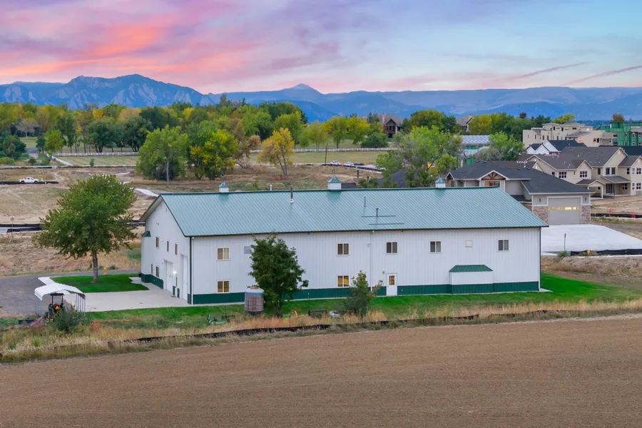 Ever dream of living in a barn...well, here's your chance! This 9,000 square foot custom Barndominium in sought after Broomfield County that borders permanent Broomfield County Open Space on the east side is your chance to live the dream! On the south side of this wonderful Barndominium you will find a complete home that boasts over 2,500 feet with a full kitchen, 2 bedrooms, 2 baths, an upstairs loft with incredible mountain views, laundry room, a brick fireplace and a large family room. The possibilities are endless here. The north portion of the barn you'll find a fully functional sports arena currently set up for soccer but it also would be awesome for pickleball, baseball training, football training, exercise, yoga or a perfect storage for the car collector, lots of options here. The heated six-car garage with RV height is perfect for the explorer to house all your "toys" for your next adventure. This wonderful converted barn sits on over an acre of land and sides to permanent Broomfield County Open Space on the east side and is within the Boulder Valley School boundaries. Aspen Creek K-8 and Broomfield High School. Bring your creativity to this wonderful, iconic Barndominium that is just minutes from Boulder, DIA and downtown Denver. Welcome Home!
