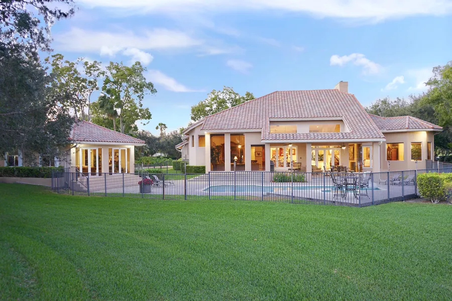 Resting on a quiet tree-lined street in the heart of the exclusive community of Windmill Ranch Estates and nestled on a 1.59 acre waterfront lot, this remarkably custom-designed home and stand alone guest house will captivate you from the moment you step into the grand foyer. The family room combined with the gourmet kitchen is adorned by vast windows and glass doors that expose stunning water views to the pool and lake. Features include an impressive master bedroom suite with sitting area and spa like bathroom. The main house has 4 bedrooms, 3.5 baths, media room, wet bar, fireplace and an over-sized 3 car garage. In addition, a spacious 1 bedroom, 1 bath guest house offers privacy and captivating water views with beautiful sunsets. This estate is perfect for entertaining!