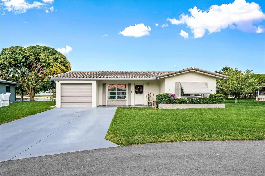 Set on an extra-large 6,500 sq ft waterfront lot in the Mainlands of Tamarac, this inviting all-ages community home offers comfort, convenience, and value. Featuring a new tile roof (2019), this 2-bedroom, 1.5-bath residence has tile flooring throughout, a one-car garage, and an extended driveway.