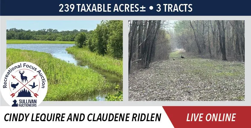 All announcements made on sale day take precedence over prior advertising either written or oral. The information in our brochure, in our advertisements, and on our website is believed to be accurate; however, no liability for its accuracy, errors, or omissions is assumed. All lines drawn on maps, photographs, drone video, etc. are approximate. Buyers should verify the information to their satisfaction. There are no expressed or implied warranties made by the seller or Sullivan Auctioneers pertaining to this property. Real estate is being sold AS IS.