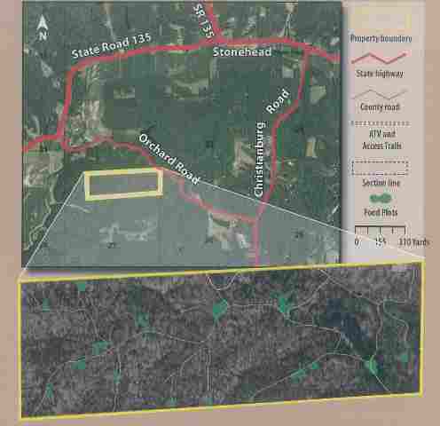 Beautiful southern Brown County property for your private country estate. High wooded ridgetop with winding trails throughout. Wildlife food plots sown among the open areas. Great for horses and less than one mile (as the crow flies) from Brown County State Park Horsemen's Camp. Great views from many potential building sites. Several creeks and lake/pond sites. Cleared road is cut in for access to all corners of the property. Freshly-paved, lightly traveled country road. 1/4 mile through private property from Hoosier National Forest.