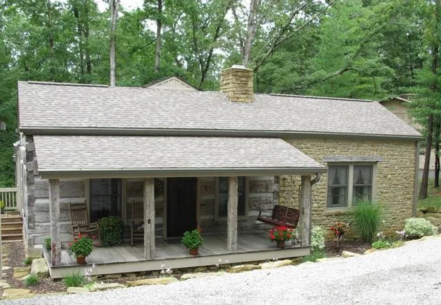 Artist Drive is one of the original roads in Nashville and gets its name from Brown County's history as a haven for the Hoosier Group of artists. This home has been handcrafted by a local builder who has created a work of art. Antique logs and barn beams have a history of their own and comprise the front portion of the house reaching 1 1/2 stories. Great Room has a Brown County stone fireplace that stretches all the way to the top of the cathedral ceiling. Beautiful hand-finished wide plank pine floors are throughout the main floor. The kitchen has the unique feature of a stone fireplace that is shared with the great room fireplace so there's only one fire to build! Kitchen floors are painted in a checkerboard pattern, custom cabinets, center island and plenty of room for a breakfast table. How you use the middle room is up to you--it could be a dining room, family room, entertai...