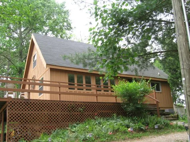 Great setting in southern Brown County. Rustic-style home has new paint inside & out; 6 newer windows; all new kitchen including appliances; new hardwood flooring. Master bedroom is 35x11 and includes a sitting area. Wrap-around deck with views of the woods, meadow below and stocked pond. Persimmon trees, blackberry bushes, and no guarantees, but morel mushrooms have been found here. Lower level unfinished.