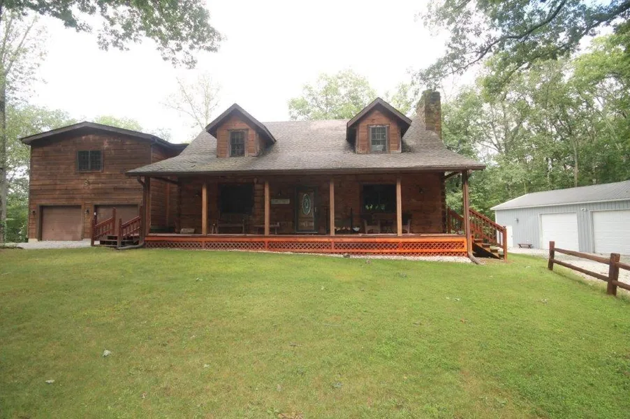 CUSTOM BUILT & 1-OWNER LOG HOME ON 5-WOODED ACRES WITH A SHARED LAKE. 30X40 STEEL OUTBUILDING WITH CEMENT FLOOR & ELECTRIC. HOME OFFERS 4-BEDROOMS & 4-FULL BATHS, COVERED FRONT & REAR PORCHES & COVERED PATIO. GREAT ROOM HAS FLOOR TO CEILING BROWN COUNTY STONE FIREPLACE. KITCHEN HAS BREAKFAST BAR & DINING AREA OPENS ONTO LARGE COVERED PORCH OVERLOOKING YARD & WOODS. ONE MAIN LEVEL BEDROOM & BATH. LARGE MUD ROOM BETWEEN GARAGE & KITCHEN. MASTER SUITE HAS 2-W/I CLOSETS, SPA BATH W/2-SINKS, FULL SHOWER, WHIRLPOOL TUB & LAUNDRY ROOM. LOFT AREA HAS A WET BAR W-REFRIGERATOR. FINISHED WALKOUT LOWER LEVEL OFFERS FAMILY ROOM, 2ND KITCHEN, BEDROOM, BONUS ROOM, FULL BATH & OPENS TO LARGE COVERED PATIO.