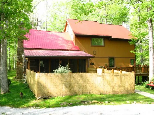 ****OPEN HOUSE SATURDAY OCTOBER 22 Noon to 3:00****Ideal location 1 mile from Nashville yet sits in the woods. The blend of old log & upscale remodeling really works here. Original log room fireplace has acid-stained concrete hearth. GR features stunning woodburning fireplace with stone to the peak of beamed cathedral ceiling. Walls full of windows-custom stained glass in one. Hickory kitchen cabinets to the ceiling. MBR partial log walls. Both full baths very nicely upgraded. Lg deck overlooks woods, screened porch, 2C gar upper storage. DSL.