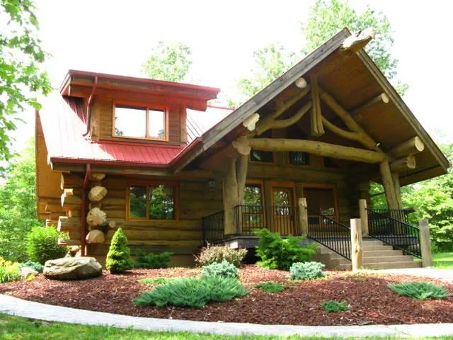 "Soaring Eagle" named for the eagle carving soaring at the peak of the front porch. Constructed with Canadian logs that are pieces of art in their own right and used as accent features throughout. Wonderful hickory floors in GR & Kit, fireplace, cathedral ceiling. 2 BR, 2 1/2 BA, loft with a balcony. Absolutely gorgeous 10 acres very private. House is nicely situated taking advantage of private lake view. Covered front porch, landscaping, back deck. This would be great Tourist Rental! DSL Hi-spd