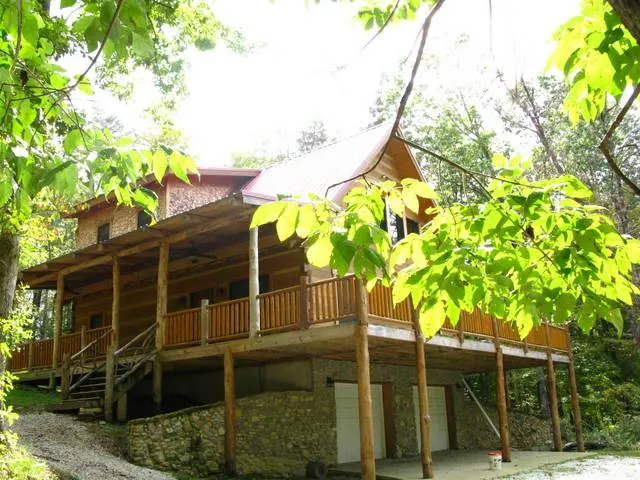 Short sale opportunity. Log home built in 2008. Great room has soaring cathedral ceiling and lots of windows. Tile gas fireplace in corner. Kitchen and baths have tile countertops and finish work, kitchen stainless steel appliances. Master suite on main floor. Upstairs loft overlooking great room, two bedrooms with shared full bath. Lower level family room with freestanding wood stove, full bath. Two-car built-in garage. Wooded acreage, partially fenced, in southern Brown County.