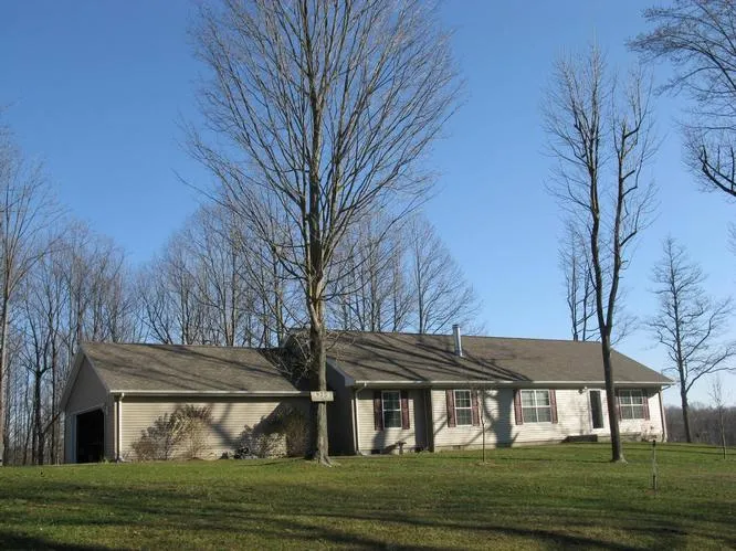 The house is terrific but you'll want to do as much living as possible outside. Almost 10 acres with exceptionally great lake; big lakeside deck, campfire area. Ideal fishing & hunting ground. House is like new, handsome kitchen, wood burning living room fireplace, entry, mudroom/laundry off attached garage, two bedrooms & full bath on one end, master on the other. Master suite has amazing 15x14 bath with garden tub with private view, walkin shower, raised double vanity, water closets, electric wall fireplace and walkin closet. On deadend road.