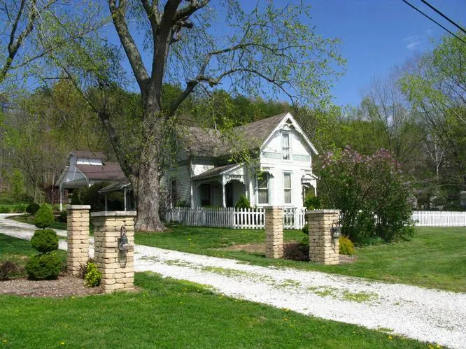 1904 farmhouse lovingly and painstakingly brought back to life. You won't want to change a thing. Exceptional detailed finish work & use of space. Highly-polished wood floors in formal dining room, hearth room has ventless gas stove. Delightful kitchen w/brick floor, ceramic tile counters & farm-style sink. Upstairs sitting room w/balcony, 2 BR's, FBA. Gingerbread trim exterior, multiple porches, patios & pathes. Picket fence enclosed yard, pergola patio area, landscaped. Pond + woods.