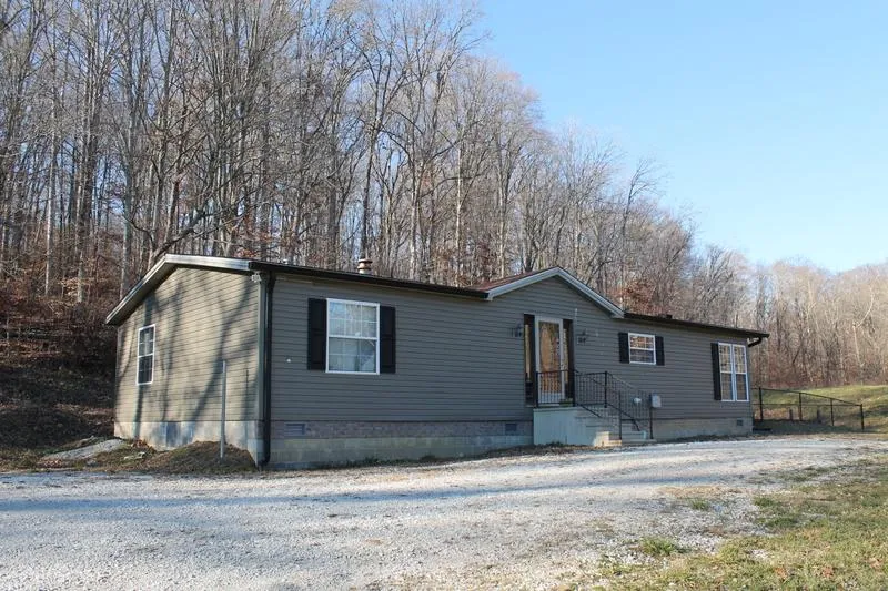 1,566 square feet! 2002 manufactured home has a great hillside setting. BIG living room (26x17) with tiled entry. Sliding doors open to sunroom across the back. Kitchen has tons of cabinets & countertop space, breakfast bar. 5-window alcove for dining. Deluxe master bath, tiled with double sink vanity, separate tub and extra-large shower. Two more bedrooms and full bath. Open wood deck and partially fenced yard. There is a pond however dam has washed out and needs repair.