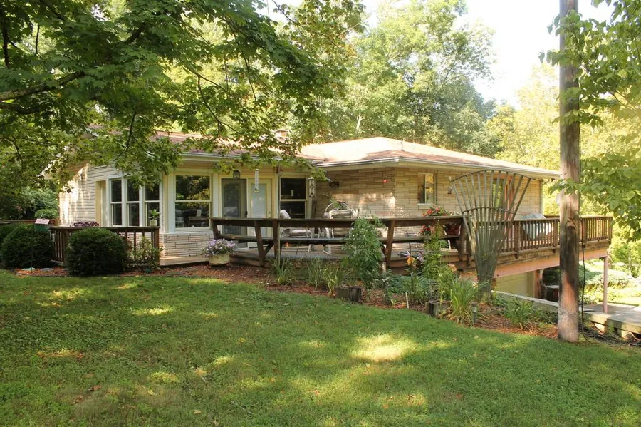 BIG PRICE REDUCTION! Lovely homestead along a quiet county road. Wonderful great room and master bath addition 2002. GR has cathedral ceiling with a gas log fireplace. Lots of doors and windows with private view. Master bath has both a whirlpool tub and walk in shower. A dining area could be included in the great room or use the former L-shaped living room as a more formal area. Full unfinished basement w/2-car garage. Large deck overlooks pond. Outbuildings. Fenced garden. Very pretty setting.