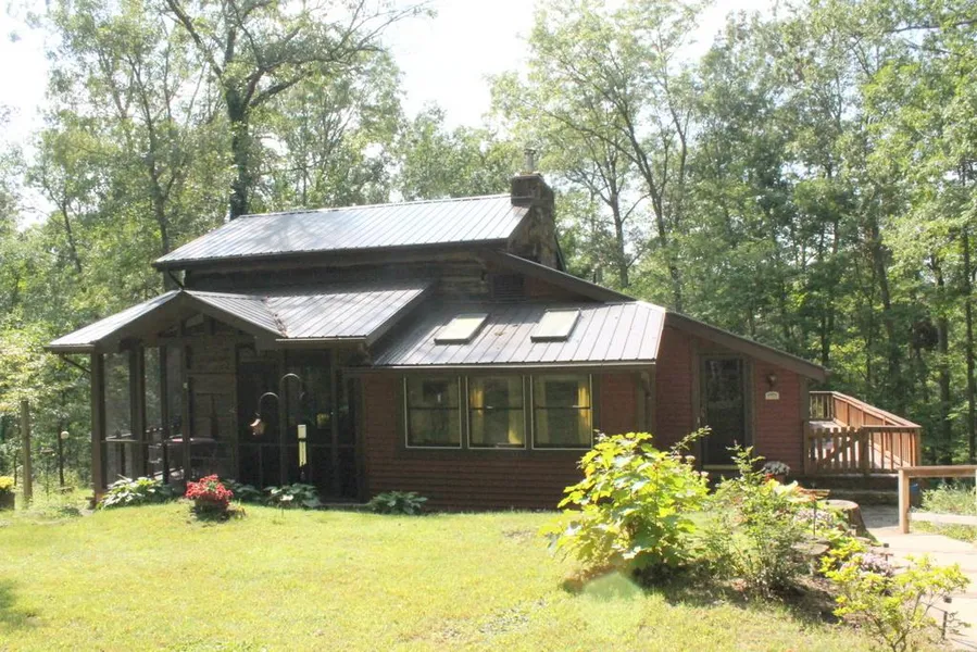 Cheery comfort will end your search for the perfect log home. Let the gas fireplace in kitchen/dining room warm you up on a chilly morning. Big skylights & windows make this a light & bright home. Hardwood floors in kitchen/dining. Woodburning insert in LR fireplace. Could be MBR on main floor or use large upper bedroom/bath/walk-in. Family room also gas fireplace. Built-in shelves & cabinets.Bonus rooms, plenty of storage, laundry. Screened porch you'll love. Backs up to Brown County State Park