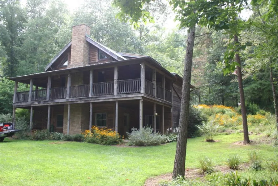 "Nature's Nest" Overnight Tourist Rental for up to 6 guests. Continue as income-producer or use for your own full-time home. Back a private lane with pretty bottom ground, some fenced pasture, small barn with elec. Home is so comfortable. Maple hardwood floors, beamed cathedral ceiling, BC stone fireplace. Custom hickory cabinets, barn beams, center island. Mstr BR hardwood floors & skylight so you can watch the night sky. Large loft. FR, BR & BA lower level. Wraparound covered & open deck.