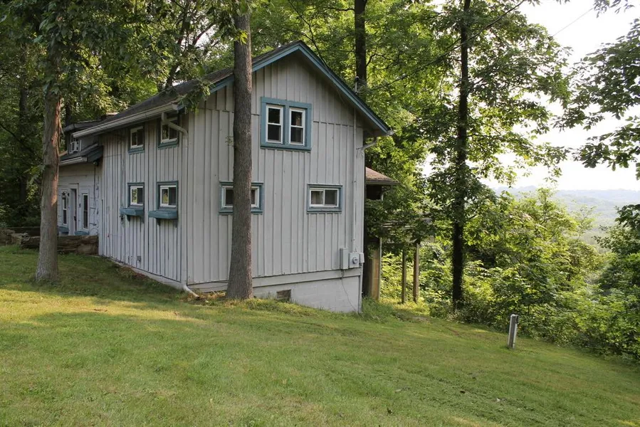 "Morningside Overlook Cabin" named for long-range, sunrise view from Bean Blossom Ridge across the valleys and hills o' Brown. Front 1 1/2 story is hand-hewn chinked log. LR hardwood floors & gas fireplace made from huge pieces of Brown County stone. Master suite also has hardwood floors & view out the back. Kitchen/dining added on w/oodles of countertop. Deck, of course, across the back to enjoy the view. Dormered office area upstairs plus 2nd bedroom and full bath. 10 acs so you control view