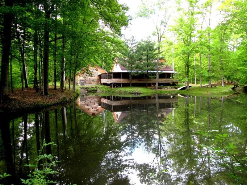 "Mossy Point" Log home, horse property, pond! Logs milled by Helmsburg Sawmill, custom design built with love & careful thought. Wide plank pine flooring. Freestanding wood fireplace in GR. Wood, beamed ceilings. Kitchen has 1920 farm sink, breakfast bar w/oak countertop. All bathrooms have re-purposed vanities. 1927 clawfoot tub. You'll live on the 950 sq ft L-shaped screened porch surrounded by stocked pond. Bridge crosses to horse barn, electric fenced pasture. Along Tecumseh Trail for hiking and horses.