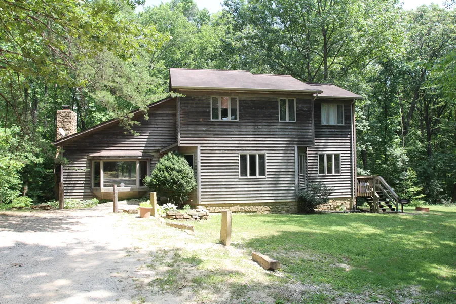 Popular tourist home called "The Ridge" located very close to Yellowwood State Forest. Three bedrooms, 3.5 bathrooms, huge kitchen with adjoining breakfast nook and dining room. Enjoy the floor to ceiling Brown County stone fireplace from the small balcony or in great room which opens onto a large deck. Access stone patio from lower level family room. Large wood bar in basement. Hot tub, Playset in the back yard for youngsters. Rustic cedar siding. 3 car garage. Nestled in the woods. Located six miles from Nashville and less than 1/2 hour drive-time to Bloomington.