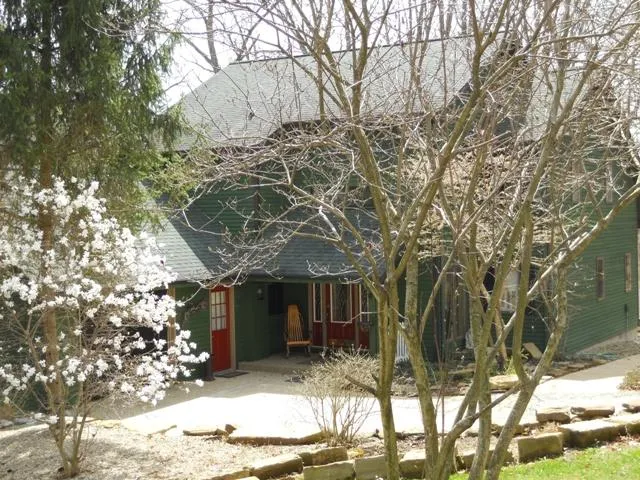 Outdoor pursuit paradise! Stay in touch with nature in this airy, open home overlooking a pristine 7-acre shared lake for fishing, boating and swimming. Three bedrooms, three bathrooms and a great room with a floor-to-ceiling Brown County stone fireplace. Hardwood floors throughout main level. Large deck on two sides of the home also overlook lake and hillsides. Redwood siding covers home. Close to Nashville on ultimate private setting. Rolling and wooded terrain ideal for enjoying the outdoors.