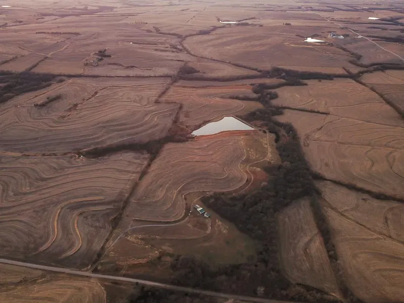 In front of the buildings there is an eleven tree orchard that includes apple and pear trees. There are two live creeks on this property, Lost Shirt Creek and Roys Creek, both with great stands of oak, walnut, and other hardwoods lining their banks and the draws leading into them. Lost Shirt Creek laces through from east to west and dumps into Roys Creek just off of the north property line. As you head along the two tracks past the buildings you are flanked by fertile hillside tillable ground which is tiled and terraced, as well as dense wooded cover, native warm season grass strips, and strategically placed cedar trees for wildlife habitat. These two tracks lead right over the dam of a beautiful 4-acre lake, which was just dredged in July of 2019. The diversity of this property is second to none with both hill ground, bottom ground, high views, water features, and tons of wildlife. There are two sections of CRP totaling 5.1 acres which will be expiring on September 30, 2023. Currently, there are 100 acres in production excluding the 5.1 acres in CRP with more possible. Due to Roys Creek separation of the farm, the western portion is accessed by Raccoon Road. This part of the tract has flat as a pancake bottom ground with some great timber and cover along the creek.