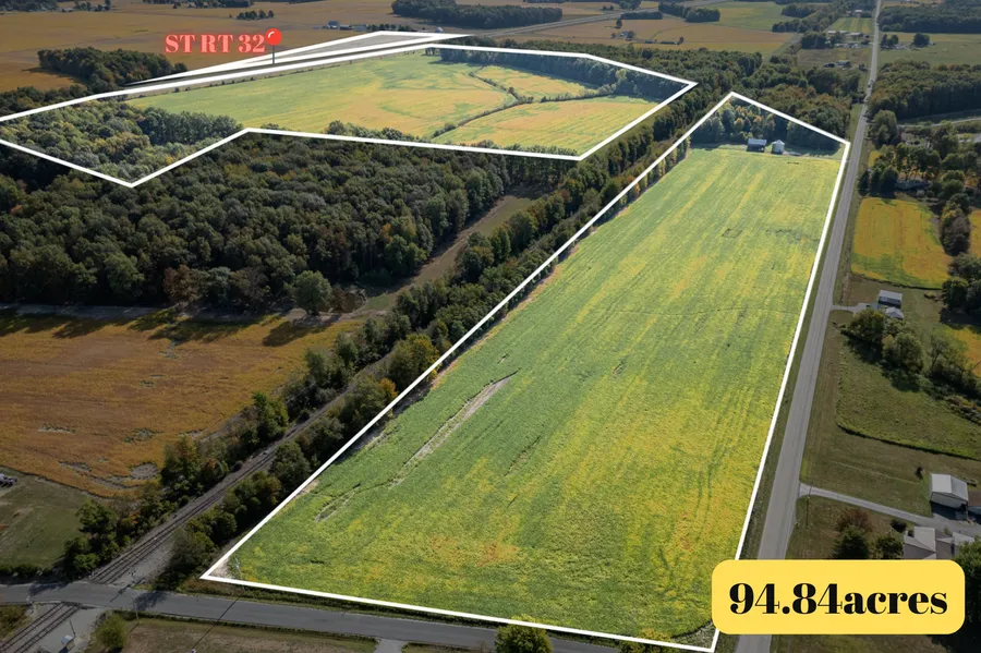 Prime farm ground! 94.84 acres with 75 tillable acres w/ excellent drainage, rich soil nutrients, and 3490ft of road frontage on SR 32 & Tri County Hwy! An ideal choice for sustainable farming practices or expansion of your agricultural business or if you are looking for a development location w/ high visibility from St Rt 32.