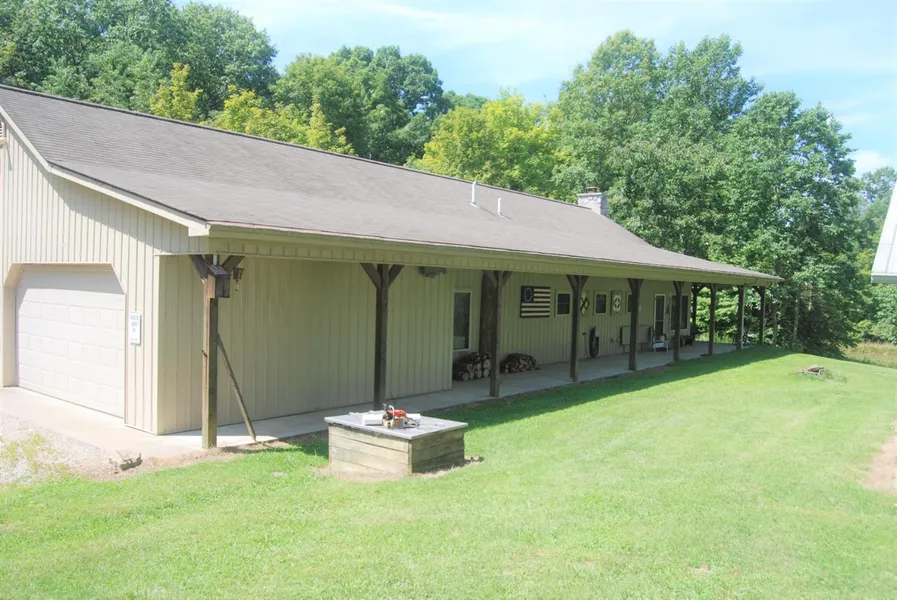 Cute ranch on 5 acre site with pond. Living Room was stone fireplace . 3 car garage plus Pole barn. Beautiful country setting with deer and turkeys running through the property.