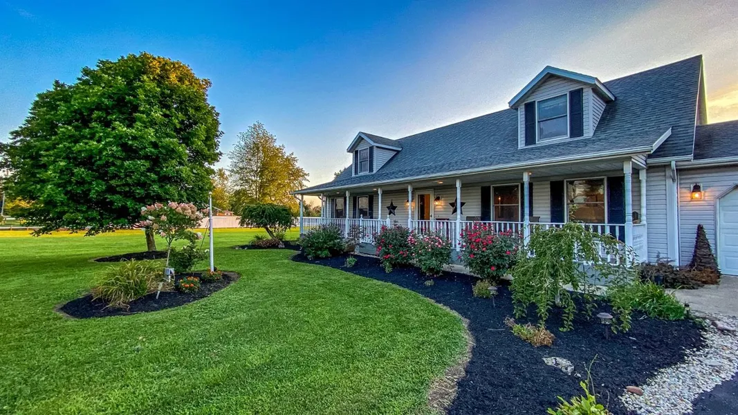 Enjoy the sunset while grilling, and unwind in the hot tub after a long day. 2060 ft w/ 4 bed|3 full bath **newly updated mstr.ba** 3.22ac | 2 car attached garage | Turnaround drive Pole Barn w/enclosed lean to Brand New ac w/built-in electric heat pump Hardwood floors | SS Appliances Additional attic storage Oversized front porch (48ft lo