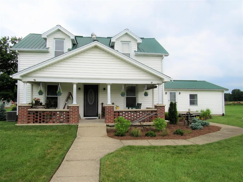 Charming farmhouse, close to shopping, groceries and highways. Huge country kitchen w/ island and walk-in pantry, wood burning stove. Baths newly remodeled, newer carpet upstairs. 40 x 60 pole barn, 16 x 20 shed + additional buildings.