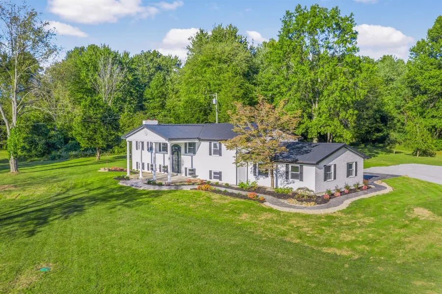 This home screams serenity! Totally remodeled 3600 sq. ft. home overlooking a large pond with several wooded acres. Gourmet kitchen has an island and a large pantry, upgraded cabinetry, Quartz countertops and all new Stainless Steel appliances. Master bath is like a spa with marbled Porcelain tile, soaking tub and oversized walk in shower and a large walk in closet. New: metal roof, gutters, doors, windows, HVAC, lighting & plumbing fixtures. Around two acres being added -see pics
