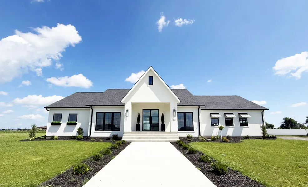 Welcome to this brand-new, custom-designed masterpiece where modern elegance meets serene living. Situated on an expansive corner lot nearing half an acre, this striking home boasts floor-mounted super-sized windows that flood the interior with natural light and showcase beautiful views of open fields. Step inside to discover real, wide-plank white oak flooring, quartz countertops, and designer tile-work in every bathroom. The gourmet kitchen is as functional as it is beautiful, perfect for entertaining, with seamless flow into the open-concept living space, anchored by one of two stunning fireplaces. The luxurious owner's suite is your private retreat, featuring an extra-large walk-in closet with built-in laundry and a spa-like en suite with curated designer details.
