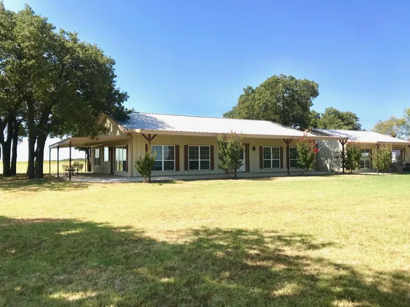 All metal home with wrap around porchesready for you to come and relax and enjoy the quiet country life! This homewould make a wonderful lodge for multiple guests with plenty of indoor andoutdoor space. The home has granitecounter tops and a large island to gather around after a long day. The second living room could be a largebedroom or divided into 2 smaller rooms. The home is nestled among Post Oak trees on a small hill and has agarage attached by an enclosed breezeway.